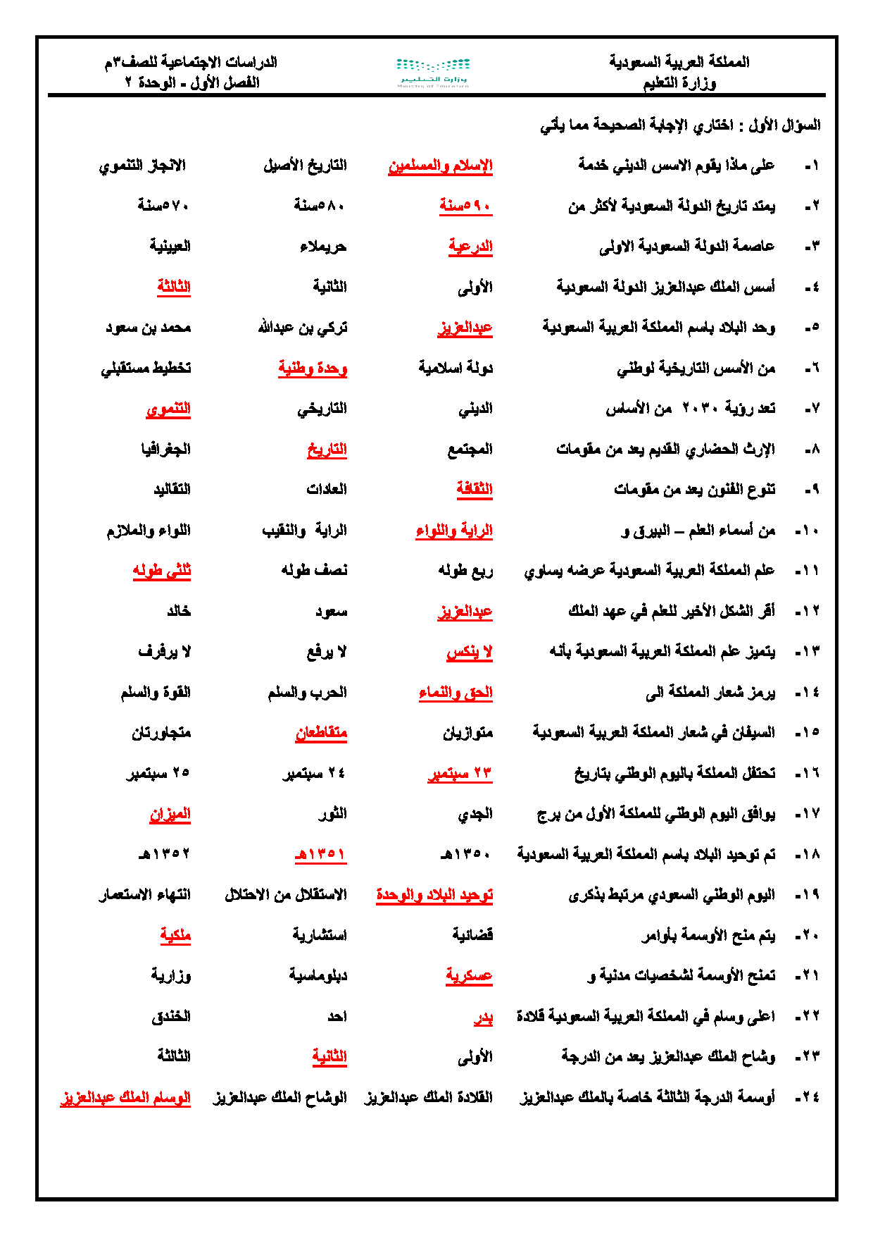 مراجعة اجتماعيات الوحدة الثانية (الهوية الوطنية) اجتماعيات ثالث متوسط فصل دراسي أول