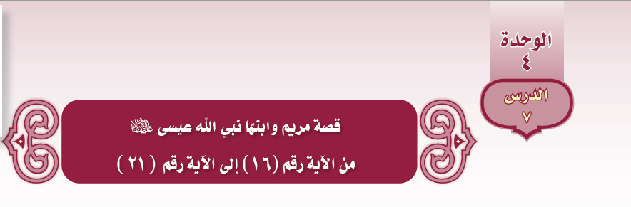 حل درس قصة مريم و ابنها نبي الله عيسى عليهما السلام من الآية رقم ( 16 ) الى الآية رقم ( 21 )